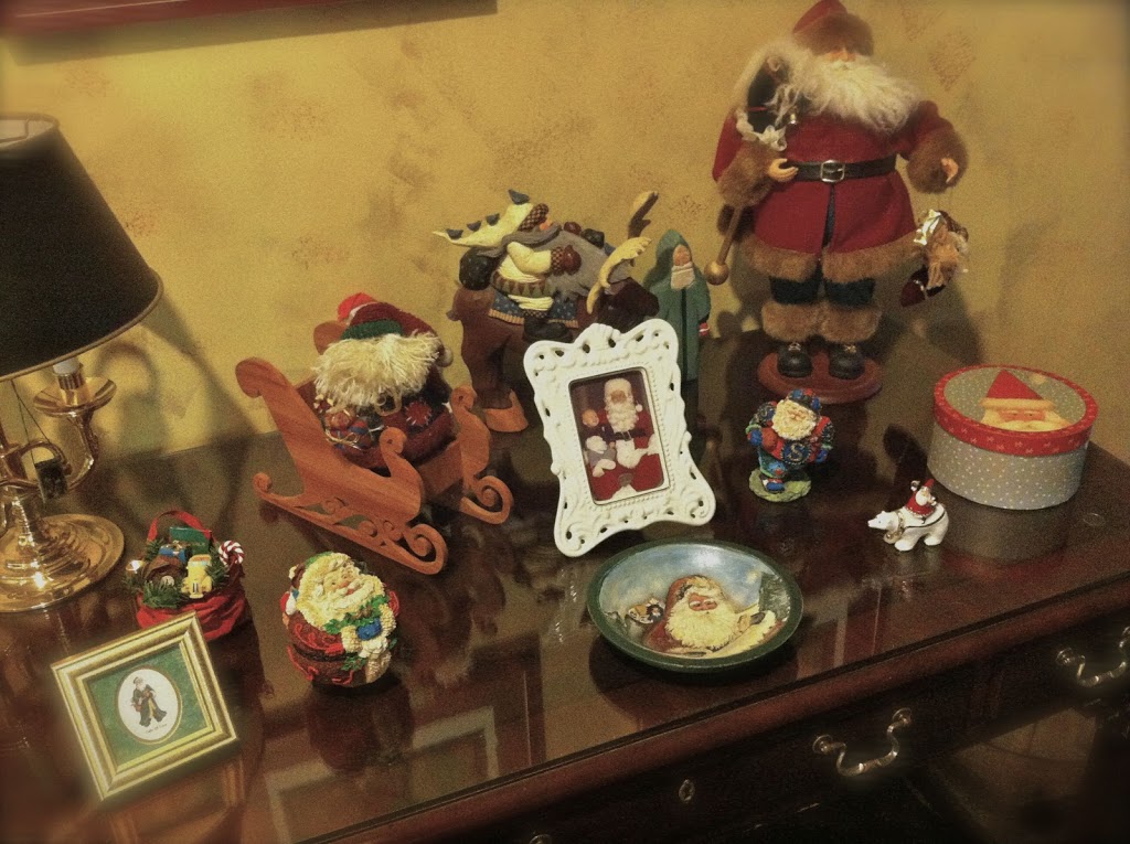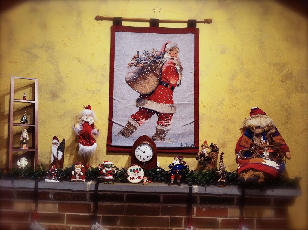 One of my favorite family traditions is adding a new Santa Claus to our collection.  We choose one almost every year and label  it so we can look back at all of them, remembering the year and what led to choosing that particular Santa.  As the included pictures show, we have a pretty wide variety.  In 1997, we added a framed picture of our first-born son sitting on the mall-Santa’s lap.  2006 is a Yoda Santa.  A lovely jeweled box with Santa riding a polar bear is one of my favorites, from 2009.  Sometime since then we chose a mountain-biking Santa because my hubbie had become an avid rider.